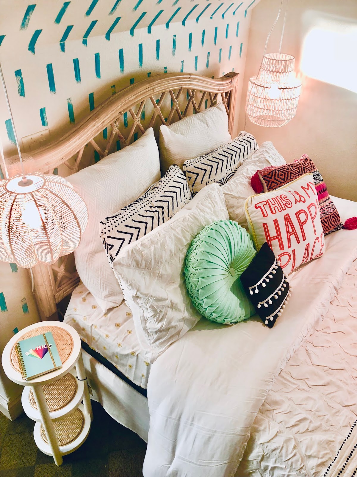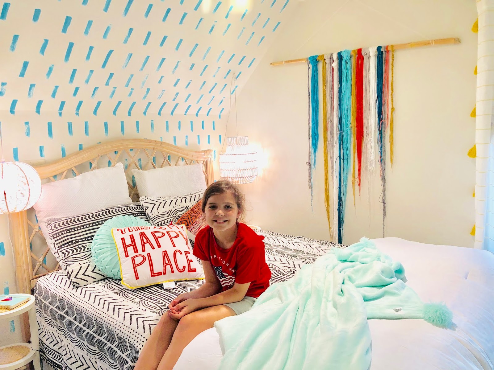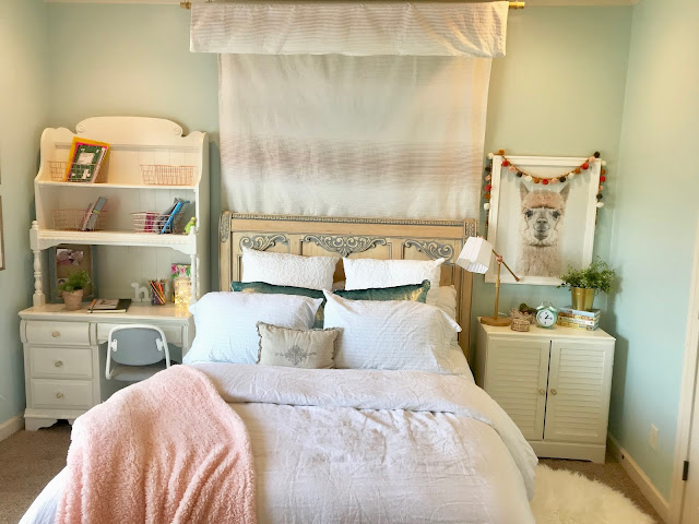 This is Zach's room before--pretty typical teen boy's room.I love when a room has something that at first seems like a limitation but later becomes your favorite element....Enter the wooden knee wall. I thought about painting it, but I'm so glad I decided to use it as the extra large headboard.